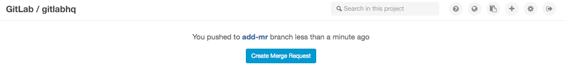 After you created a new branch, you'll immediately find a "create a Merge Request" button at the top of your screen. You may automatically create a Merge Request from your recently created branch when clicking on this button: